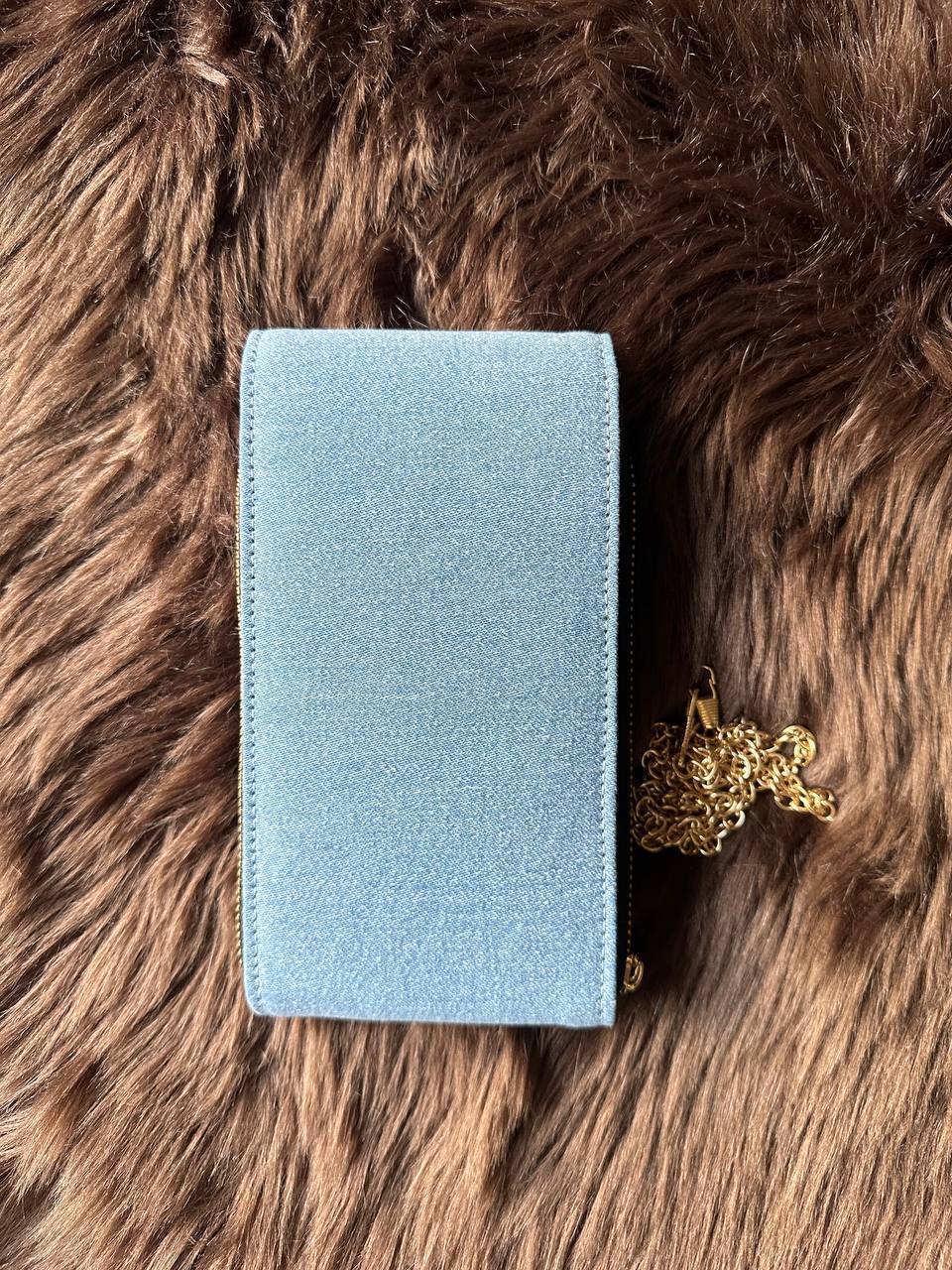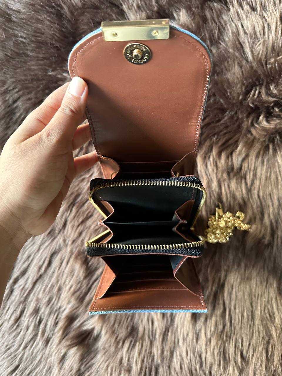Our denim mobile slings have 3 separate compartments. The middle Zipped Compartment Can fit phone upto 6.7 inches screen. It has 8 card slots and space for cash as well. It can fit in your comb, sanitary napkin, tissues as well. It comes with a detachable and adjustable leather strap.