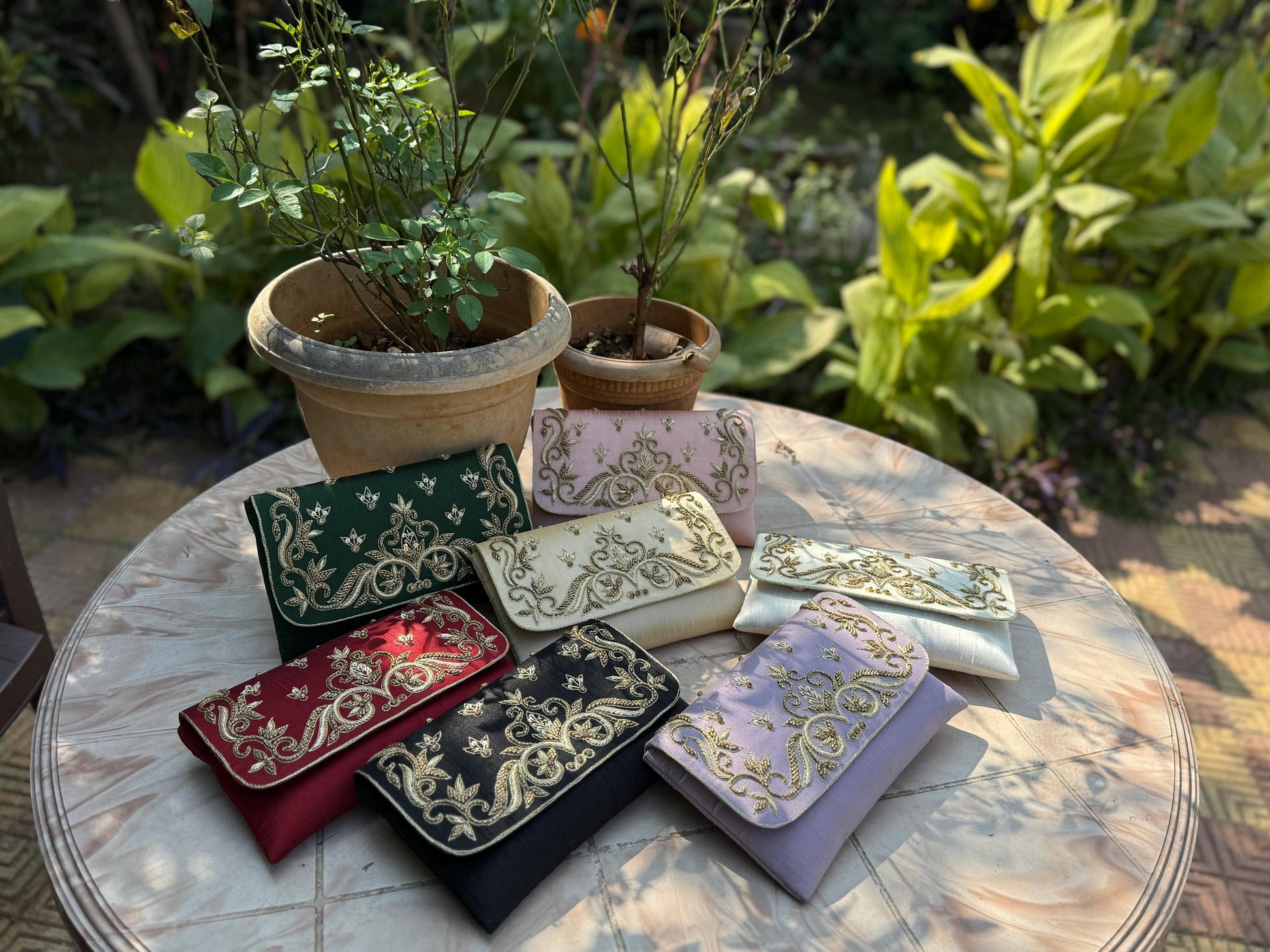 Launching an ethnic clutch with handwork in a affordable range. Comes with a sling chain. Can fit in all phones and other essentials