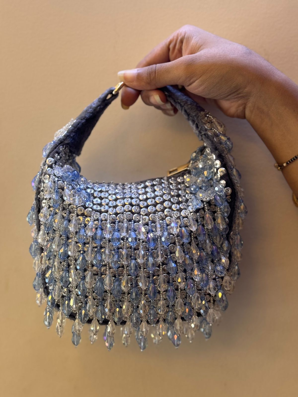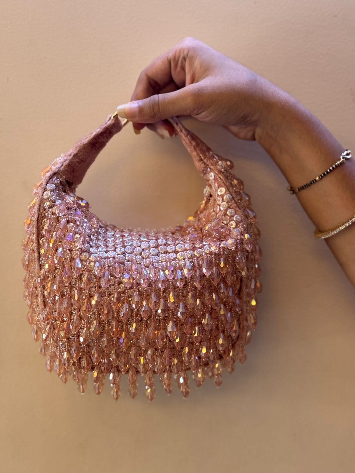 The Noorani Bag is must-have for fashion-forward individuals. Its unique shape and luxurious design will elevate any outfit. Crafted with premium quality materials and intricate bead drop detailing, this bag is truly one of a kind. Make a sophisticated statement with the Noorani Bag.