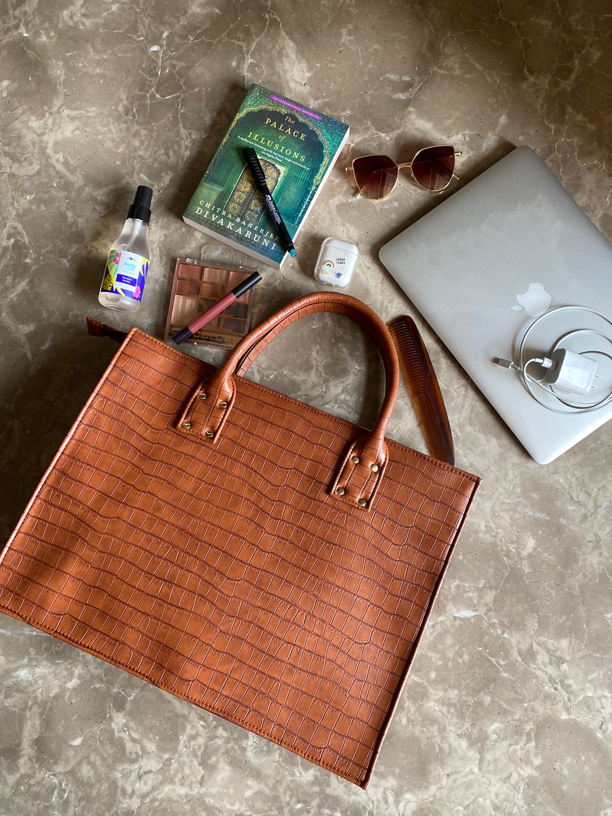 A chic and classy office bag. The main compartment is secured by a zipper closure & features a separate laptop compartment to secure your laptop essentially along with ample space to store your everyday essentials. It can fit up to 16" laptops and ensures security and accessibility.